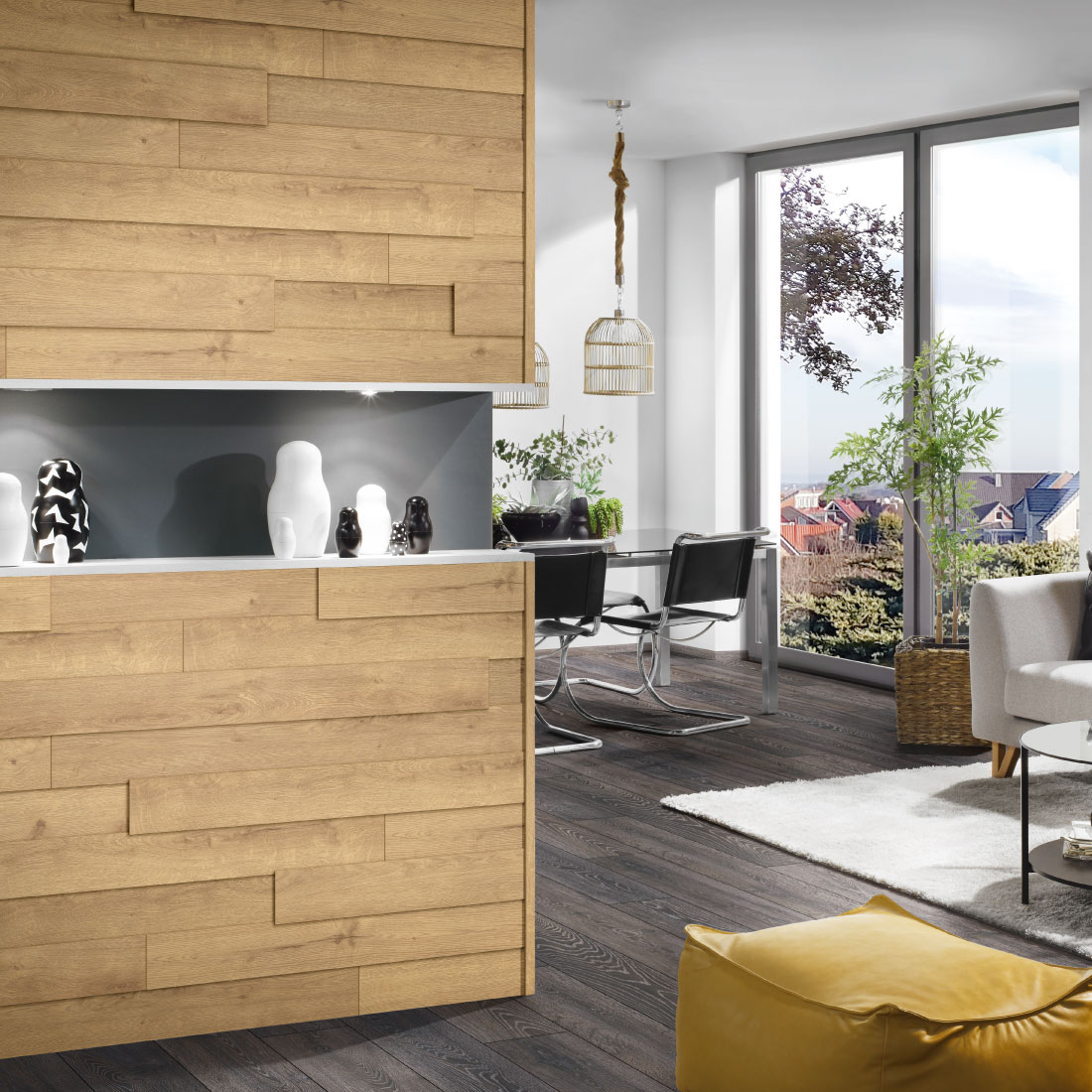 Kronowall es un tipo de suelo fabricado a base de varias capas de materiales derivados de la madera o sintéticos que imitan de forma realista diferentes tipos de acabados.