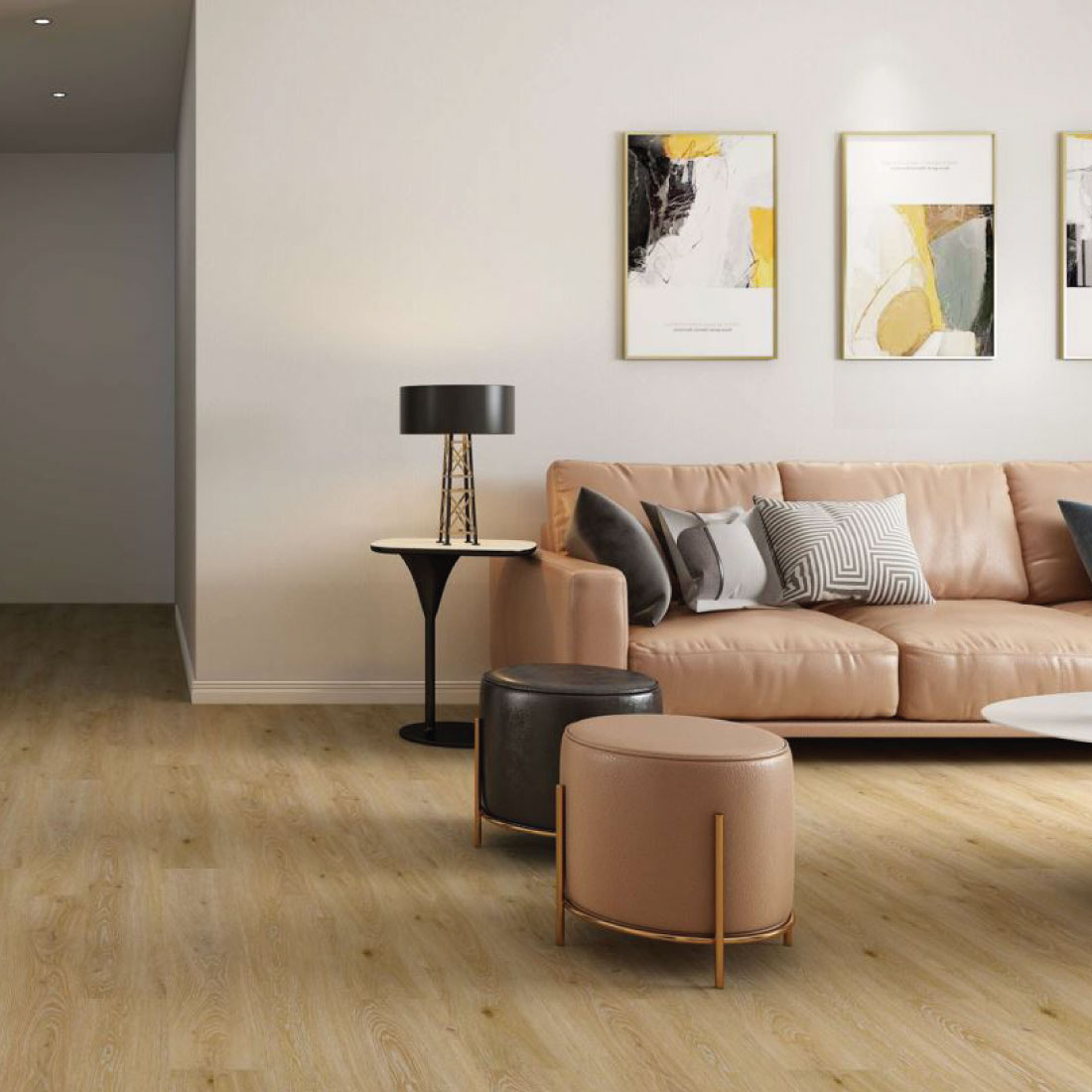 Puede instalarse en baños, excepto en la zona de la ducha, ya que aunque soporta la humedad, no es un producto impermeable. Gracias a su estructura rígida, ofrece estabilidad, resistencia y un excelente comportamiento en ambientes con presencia moderada de agua.